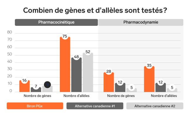 Quels gènes sont testés par les tests pharmacogénomiques de Biron?